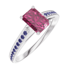 Pierścionek Białe złoto 750 - Rubin Prostokąt 0.5 karat - Oprawa Niebieski szafir