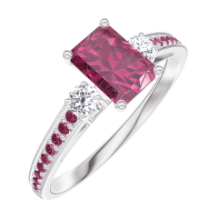 Pierścionek Białe złoto 750 - Rubin Prostokąt 0.5 karat - Kamienie boczne Diament - Oprawa Rubin