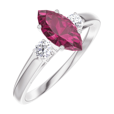 « L'ATELIER » NR 163523Pierścionek Białe złoto 750 - Rubin Markiza 0.5 karat - Kamienie boczne Diament