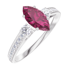 « L'ATELIER » NR 163528Pierścionek Białe złoto 375 - Rubin Markiza 0.5 karat - Kamienie boczne Diament - Oprawa Diament