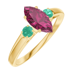« L'ATELIER » NR 163582Pierścionek Żółte złoto 375 - Rubin Markiza 0.5 karat - Kamienie boczne Szmaragd