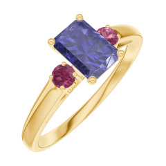 Pierścionek Żółte złoto 375 - Niebieski szafir Prostokąt 0.5 karat - Kamienie boczne Rubin