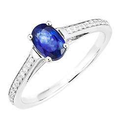 Pierścionek Białe złoto 750 - Niebieski szafir Owal 0.5 karat - Oprawa Diament