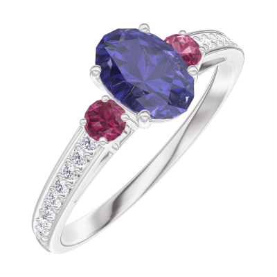 « L'ATELIER » Nº163947Pierścionek Białe złoto 750 - Niebieski szafir Owal 0.5 karat - Kamienie boczne Rubin - Oprawa Diament