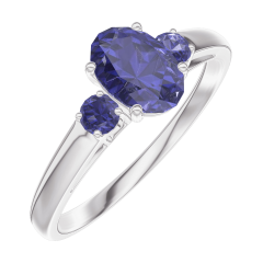Pierścionek Białe złoto 375 - Niebieski szafir Owal 0.5 karat - Kamienie boczne Niebieski szafir