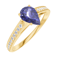 Pierścionek Żółte złoto 375 - Niebieski szafir Gruszka 0.5 karat - Oprawa Diament