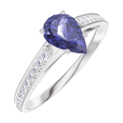Pierścionek Białe złoto 750 - Niebieski szafir Gruszka 0.5 karat - Oprawa Diament