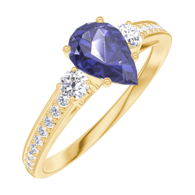 « L'ATELIER » NR 164026Pierścionek Żółte złoto 375 - Niebieski szafir Gruszka 0.5 karat - Kamienie boczne Diament - Oprawa Diament