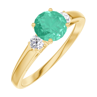« L'ATELIER » Nº164222Pierścionek Żółte złoto 375 - Szmaragd okrągły 0.5 karat - Kamienie boczne Diament 4.9