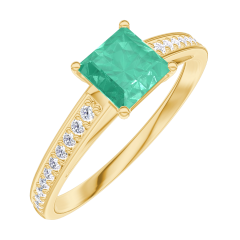 Pierścionek Żółte złoto 750 - Szmaragd „Księżniczka” 0.5 karat - Oprawa Diament