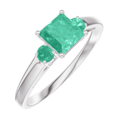 « L'ATELIER » NR 164384Pierścionek Białe złoto 375 - Szmaragd „Księżniczka” 0.5 karat - Kamienie boczne Szmaragd