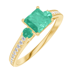 Pierścionek Żółte złoto 375 - Szmaragd „Księżniczka” 0.5 karat - Kamienie boczne Szmaragd - Oprawa Diament