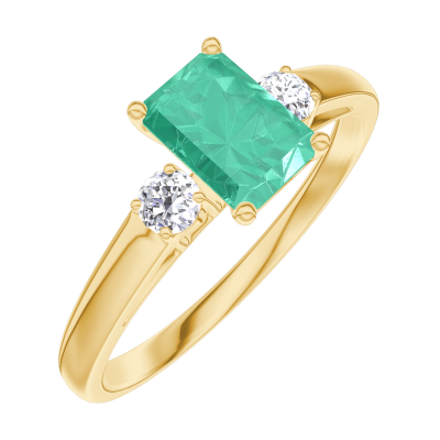 « L'ATELIER » NR 164422Pierścionek Żółte złoto 375 - Szmaragd Prostokąt 0.5 karat - Kamienie boczne Diament