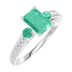 Pierścionek Białe złoto 375 - Szmaragd Prostokąt 0.5 karat - Kamienie boczne Szmaragd - Oprawa Diament