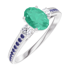 Pierścionek Białe złoto 750 - Szmaragd Owal 0.5 karat - Kamienie boczne Diament - Oprawa Niebieski szafir