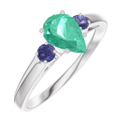 « L'ATELIER » Nº164664Pierścionek Białe złoto 375 - Szmaragd Gruszka 0.5 karat - Kamienie boczne Niebieski szafir