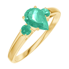 Pierścionek Żółte złoto 375 - Szmaragd Gruszka 0.5 karat - Kamienie boczne Szmaragd