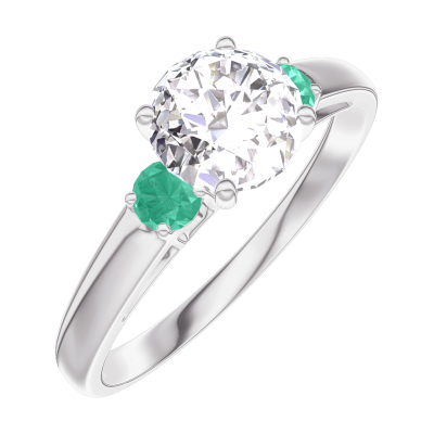 « L'ATELIER » NR 164883Pierścionek Białe złoto 750 - Diament okrągły 0.7 karat - Kamienie boczne Szmaragd 5