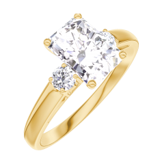 Pierścionek Żółte złoto 750 - Diament Prostokąt 0.7 karat - Kamienie boczne Diament