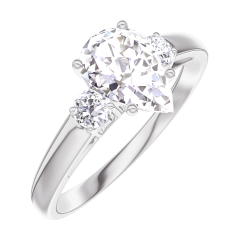 Pierścionek Białe złoto 375 - Diament Gruszka 0.7 karat - Kamienie boczne Diament