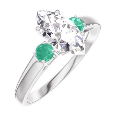 « L'ATELIER » Nº165383Pierścionek Białe złoto 750 - Diament Markiza 0.7 karat - Kamienie boczne Szmaragd
