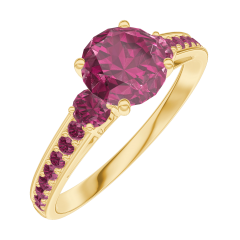 Pierścionek Żółte złoto 750 - Rubin okrągły 0.7 karat - Kamienie boczne Rubin - Oprawa Rubin