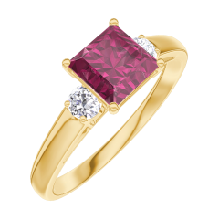 Pierścionek Żółte złoto 375 - Rubin „Księżniczka” 0.7 karat - Kamienie boczne Diament