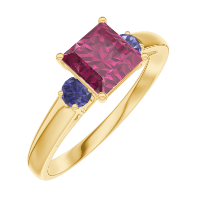 « L'ATELIER » NR 165561Pierścionek Żółte złoto 750 - Rubin „Księżniczka” 0.7 karat - Kamienie boczne Niebieski szafir