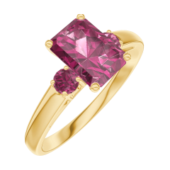 Pierścionek Żółte złoto 375 - Rubin Prostokąt 0.7 karat - Kamienie boczne Rubin