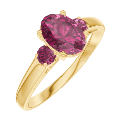 Pierścionek Żółte złoto 375 - Rubin Owal 0.7 karat - Kamienie boczne Rubin