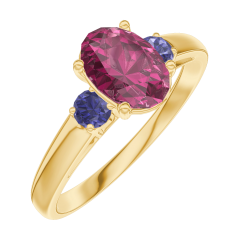 Pierścionek Żółte złoto 375 - Rubin Owal 0.7 karat - Kamienie boczne Niebieski szafir