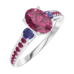 « L'ATELIER » NR 165772Pierścionek Białe złoto 375 - Rubin Owal 0.7 karat - Kamienie boczne Niebieski szafir - Oprawa Rubin