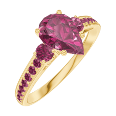 Pierścionek Żółte złoto 750 - Rubin Gruszka 0.7 karat - Kamienie boczne Rubin - Oprawa Rubin