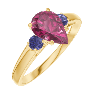 « L'ATELIER » NR 165861Pierścionek Żółte złoto 750 - Rubin Gruszka 0.7 karat - Kamienie boczne Niebieski szafir