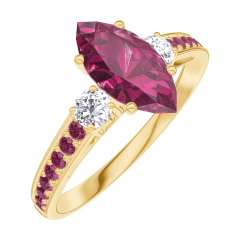 « L'ATELIER » NR 165929Pierścionek Żółte złoto 750 - Rubin Markiza 0.7 karat - Kamienie boczne Diament - Oprawa Rubin