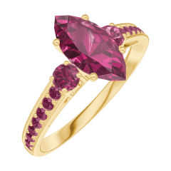 Pierścionek Żółte złoto 375 - Rubin Markiza 0.7 karat - Kamienie boczne Rubin - Oprawa Rubin