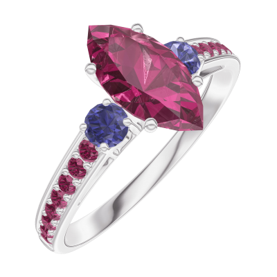 « L'ATELIER » Nº165971Pierścionek Białe złoto 750 - Rubin Markiza 0.7 karat - Kamienie boczne Niebieski szafir - Oprawa Rubin