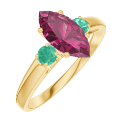 Pierścionek Żółte złoto 750 - Rubin Markiza 0.7 karat - Kamienie boczne Szmaragd