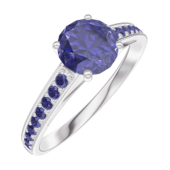 « L'ATELIER » NR 166016Pierścionek Białe złoto 375 - Niebieski szafir okrągły 0.7 karat - Oprawa Niebieski szafir 5