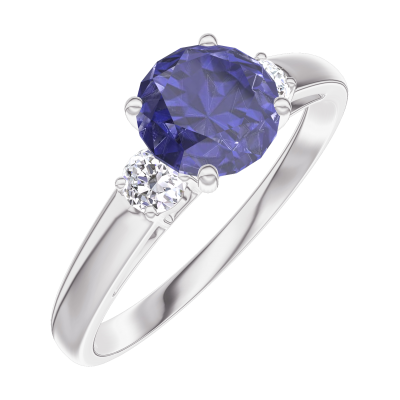 « L'ATELIER » NR 166024Pierścionek Białe złoto 375 - Niebieski szafir okrągły 0.7 karat - Kamienie boczne Diament 5