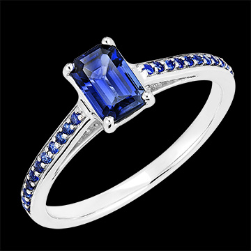 « L'ATELIER » NR 166216Pierścionek Białe złoto 375 - Niebieski szafir Prostokąt 0.7 karat - Oprawa Niebieski szafir