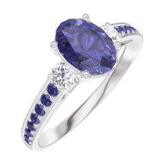« L'ATELIER » NR 166336Pierścionek Białe złoto 375 - Niebieski szafir Owal 0.7 karat - Kamienie boczne Diament - Oprawa Niebieski szafir