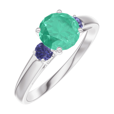 « L'ATELIER » NR 166663Pierścionek Białe złoto 750 - Szmaragd okrągły 0.7 karat - Kamienie boczne Niebieski szafir 5