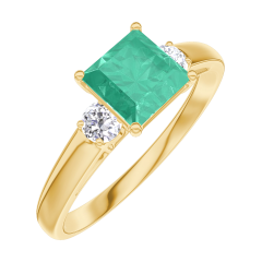 Pierścionek Żółte złoto 375 - Szmaragd „Księżniczka” 0.7 karat - Kamienie boczne Diament
