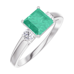 Pierścionek Białe złoto 750 - Szmaragd „Księżniczka” 0.7 karat - Kamienie boczne Diament