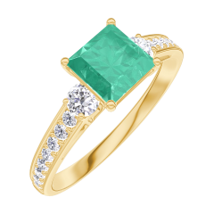 Pierścionek Żółte złoto 750 - Szmaragd „Księżniczka” 0.7 karat - Kamienie boczne Diament - Oprawa Diament