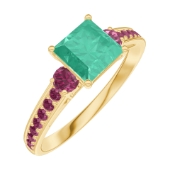 Pierścionek Żółte złoto 375 - Szmaragd „Księżniczka” 0.7 karat - Kamienie boczne Rubin - Oprawa Rubin