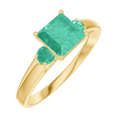 Pierścionek Żółte złoto 375 - Szmaragd „Księżniczka” 0.7 karat - Kamienie boczne Szmaragd