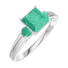 Pierścionek Białe złoto 750 - Szmaragd „Księżniczka” 0.7 karat - Kamienie boczne Szmaragd