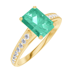Pierścionek Żółte złoto 375 - Szmaragd Prostokąt 0.7 karat - Oprawa Diament